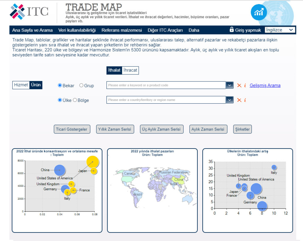 - Trade Map kaynağı ise UN Comtrade’dir ki UN Comtrade, dünyanın en geniş istatistik veri tabanı kabul edilmektedir.